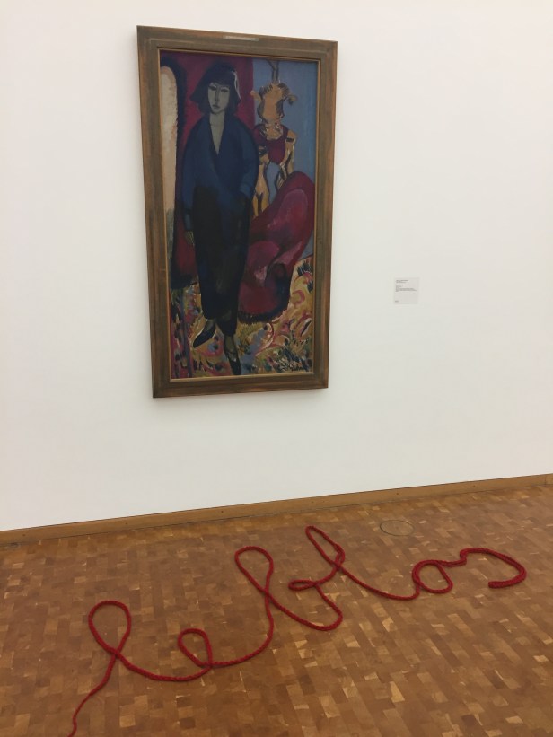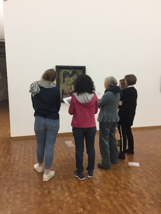 Danach ging es ins zweite Obergeschoss zur expressionistischen Abteilung, die der Sammler Josef Haubrich der Stadt Köln nach dem zweiten Weltkrieg schenkte. Nach einer kurzen Einleitung zu den historischen Rahmenbedingungen der ausgestellten Werke wurden verschiedene Methoden vorgestellt um sich den Werken anzunähern. Schlagwörter konnten zu einem ausgewählten Bild diskutiert und angeordnet werden, Rollenbiografien wurden zu Figuren entwickelt und Wörterpuzzle zu neuen Gedichten gelegt. Weitere kreative Schreibübungen reicherten die Bilderfahrungen der Gruppe an. Dabei wurde angeregt in den Kleingruppen diskutiert. Durch die zum Teil unterschiedliche Wahrnehmung der Werke wurde deutlich, wie sehr man selbst die Wirkung eines Bildes durch eigene Erfahrungen, Tagesform und Ansichten unbewusst mitgestaltet. Bei der abschließenden Vorstellung der Ergebnisse traten Mehrdeutigkeiten und Ähnlichkeiten bei den verschiedenen Eindrücken unverkennbar hervor.