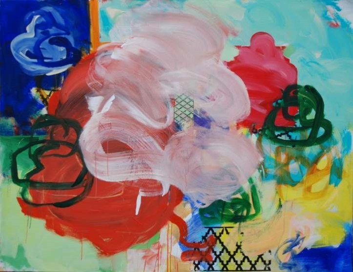 G: Die Techniken sind im Grunde nicht so eine wichtige Sache. Wichtiger ist natürlich, dass man bestimmte Ideen realisiert und das man dabei die Farbe so nutzt, dass die Ideen Gestalt annehmen können. Ich habe lange Zeit mit Ölfarben gearbeitet, was ich auch schätze, aber dann gab es einen Punkt, wo ich von heute auf morgen das Medium gewechselt habe. Darüber bin ich heute sehr froh, da Acryl das Spontane, das schnelle Trocknen ermöglicht. Ich schätze an Acryl die Geduld der Farben, damit kann man alles Mögliche machen. Es ist einfacher als mit Öl, wo man die Probleme hat mit der Säuberung der Pinsel und all das. Ich bin froh, jetzt in Acryl zu arbeiten.